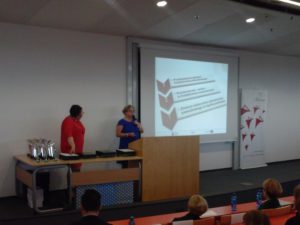 Na zdjęciu znajduje się: Wicedyrektor Ośrodka Rozwoju Edukacji Bożena Mayer-Gawron oraz Kierowniczka Działu Projektów Edukacyjnych Fundacji Fundusz Współpracy Agnieszka Luck