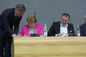 Podczas konferencji „Uczeń, szkoła, pracodawca – możliwości i wyzwania” podpisano list intencyjny sprawie uruchomienia Warmińsko-Mazurskiego Klasta Edukacyjnego / fot. D. Oleksiak. 2016-12-22 Mateusz