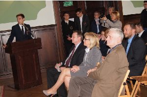 Na zdjęciu po lewej uczeń szkoły (młody eksperymentator) / fot. Starostwo Powiatowe w Wejherowie. 2016-12-22 Mateusz